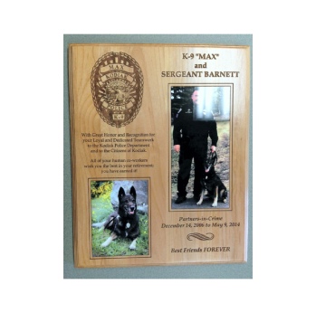 Solid Surface CNC Laser, Inlayed and Color Filled Retirement Plaque