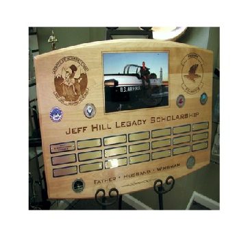 and more. We can cut shaped wood plaques or acrylics that can be lasered. We can add special effects such as, art carvings or glassworks. We can create the ultimate personal award. Send us your requirements for a Custom Award quote.